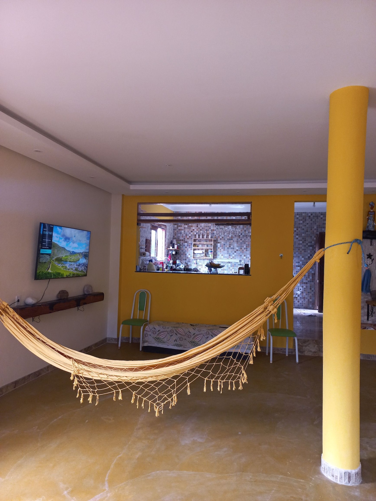 Situated in the Ribeirão do Meio neighborhood, the property is very close to the trailheads for Sossego, Ribeirão do Meio, and other natural attractions in the region. Additionally, the house is just a short distance from the historic center of Lençóis, where you can explore local shops, restaurants, and the charming town atmosphere. The house shares the outdoor space and the garage with a bungalow. However, both spaces offer privacy, ensuring comfort and tranquility for all guests.