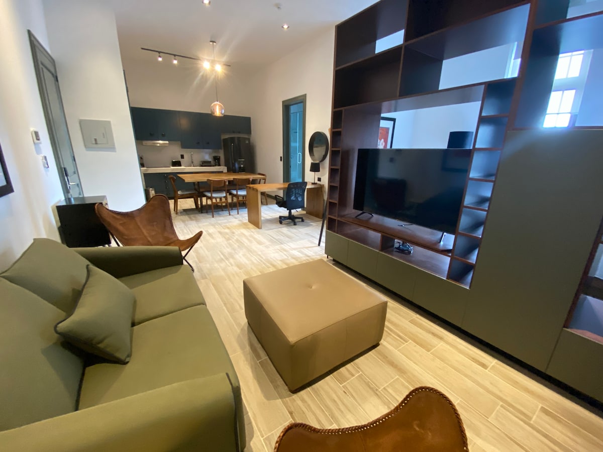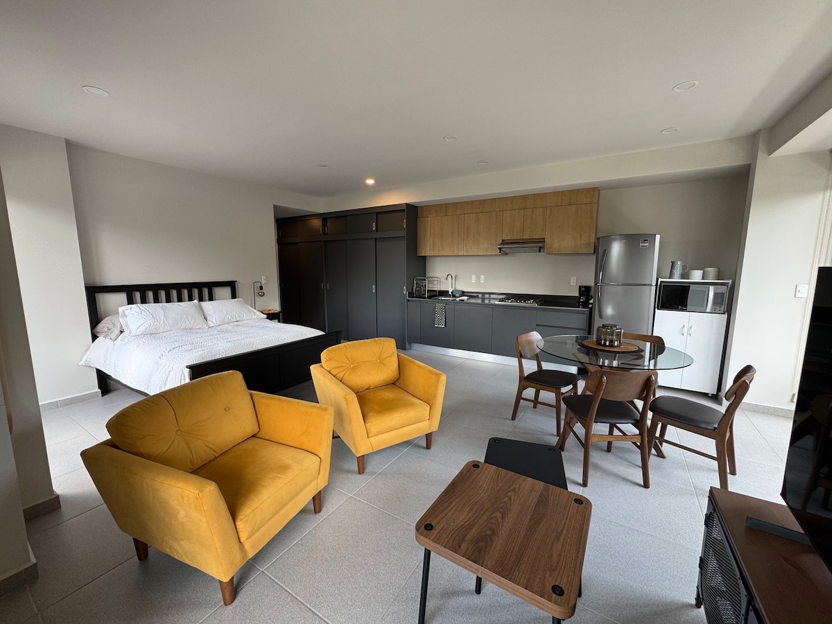 Departamento tipo loft totalmente equipado para gozar de una estadía realmente placentera y como en casa, diseño muy original y acogedor, una amplia terraza para tomar el sol y tener una rica tarde, ubicada cerca de cines, súper,farmacia y tienda de abarrotes frente al departamento, una zona tranquila de la ciudad, el lugar ideal para tener horas de descanso y/o trabajar sin el bullicio de estar en medio de la ciudad.