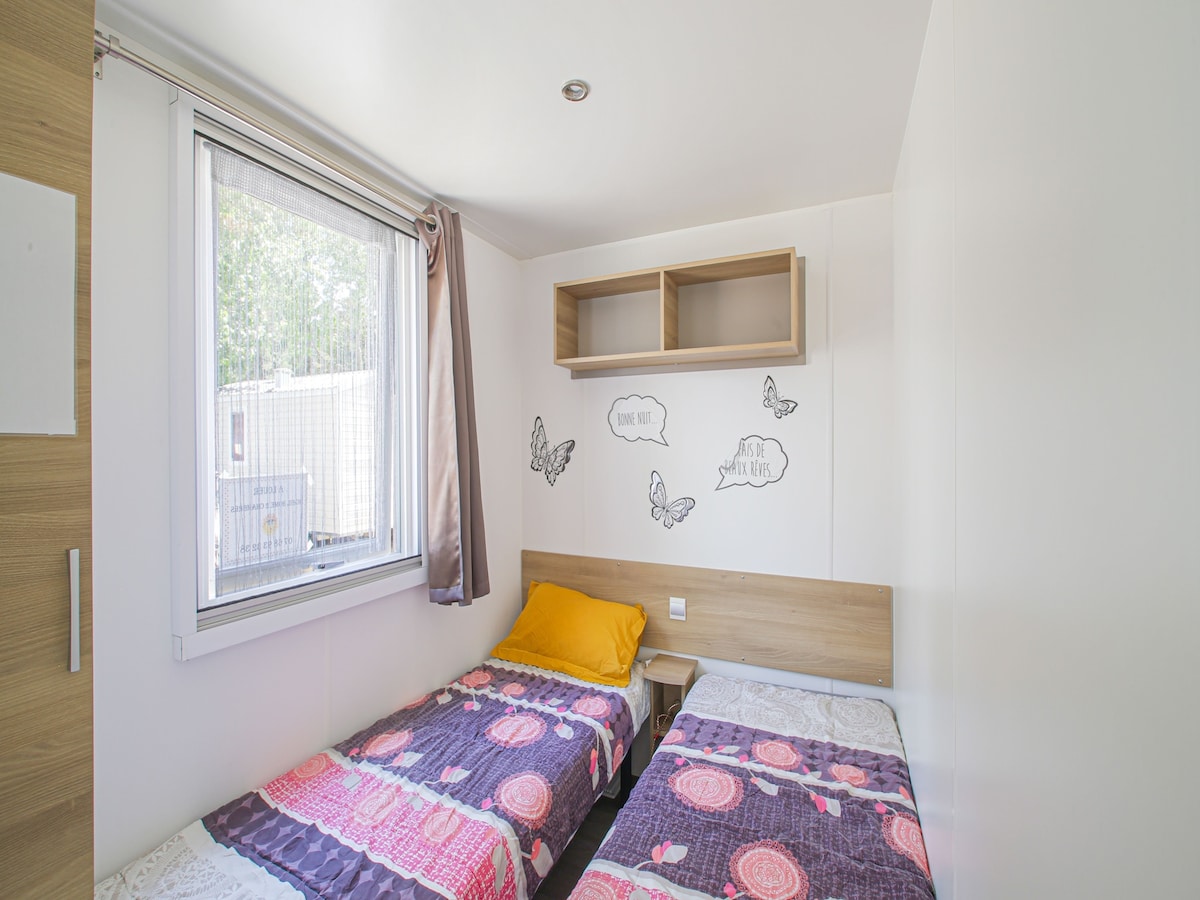 Ce chalet de charme confortable et bien équipé vous offrira des vacances détente, dans un environnement naturel et paisible à 650 mètres de notre superbe plage de sable fin. Il est équipé de 2 chambres cabine, une avec lit double et une avec 2 lits simples et superposés, et aussi d’un lit clic clac dans le séjour. La pièce principale et salle à manger est une pièce de vie très agréable et lumineuse. Elle est équipée d’un canapé confortable et d’une grande télé connectée écran plat.