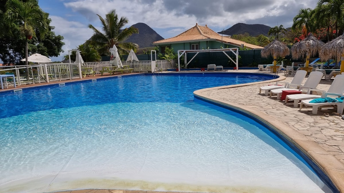 Our Ti surf Lodge is a bungalow for two people nestled in the heart of the tropical vegetation, in the municipality of Le Diamant. Entirely made of exotic wood, the lodge is relaxing and unique... With its private pool, you can rest and relax while enjoying the sunbathing. Covered outdoor kitchen, air-conditioned bedroom with TV and Italian bathroom. Separate toilets. Private entrance with secure parking space.