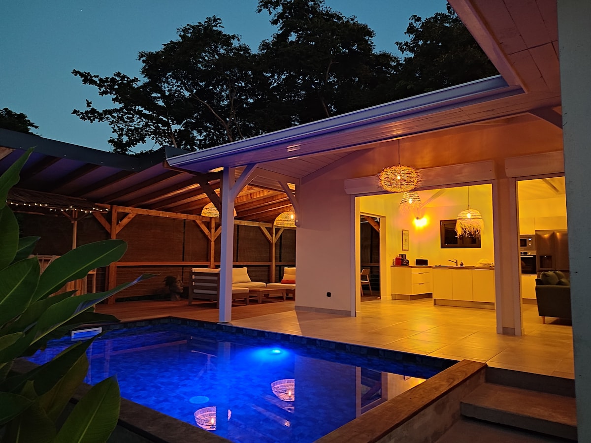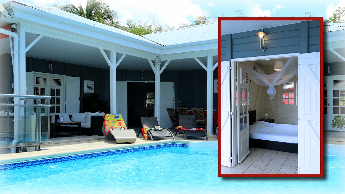 The Villa "3i" with its large swimming pool and its exotic floral garden, it faces the sea with its own private pontoon. Mixing the traditional Creole style with exotic and contemporary wood species. A hundred meters from the most beautiful beach of Anse Mitan. You are close to all amenities and the location makes it easy to travel all over the island. Ideal for trips with family or friends. PLEASE NOTE 180 € CLEANING/LAUNDRY PACKAGE ON DELIVERY OF KEYS