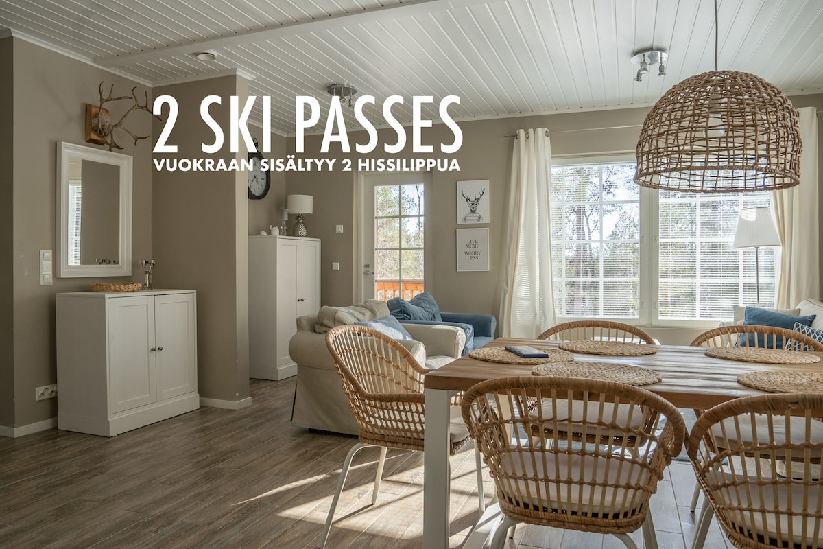 As if emerging straight out of a fairy-tale fantasy, this cottage exudes a nordic charm and unmatched privacy like no other. Envision a place of solitude nestled in the nordic forest, where you can gaze at the aurora borealis in the sky, soothe your muscles in indoor sauna, or ski down the slopes of Levi Ski Resort a 10-minute drive away! On the inside, you'll find a 56 sq. m space boasting a living room area with an HDTV, a desk space with 100 Mbps Wi-Fi, and a fully equipped kitchen!