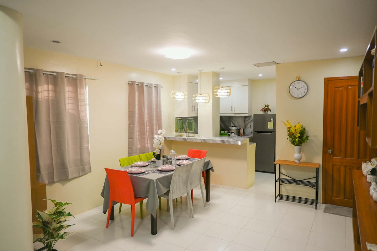open for long term stay fast internet speed house can accomodate up to 10 pax (extra charge per pax in excess of 4) large indoor loft hammock indoor pool with outdoor shower own water filtration system & water pressure tank fully furnished fully air-conditioned 24/7 security garage with TV spacious lving area with sofa bed & couch Netflix ready Smart TV terrace with shoe organizer bicycle, motorcycle & car rentals basketball court & gazebo inside the subdivision Love FISHING? stay with us 😉