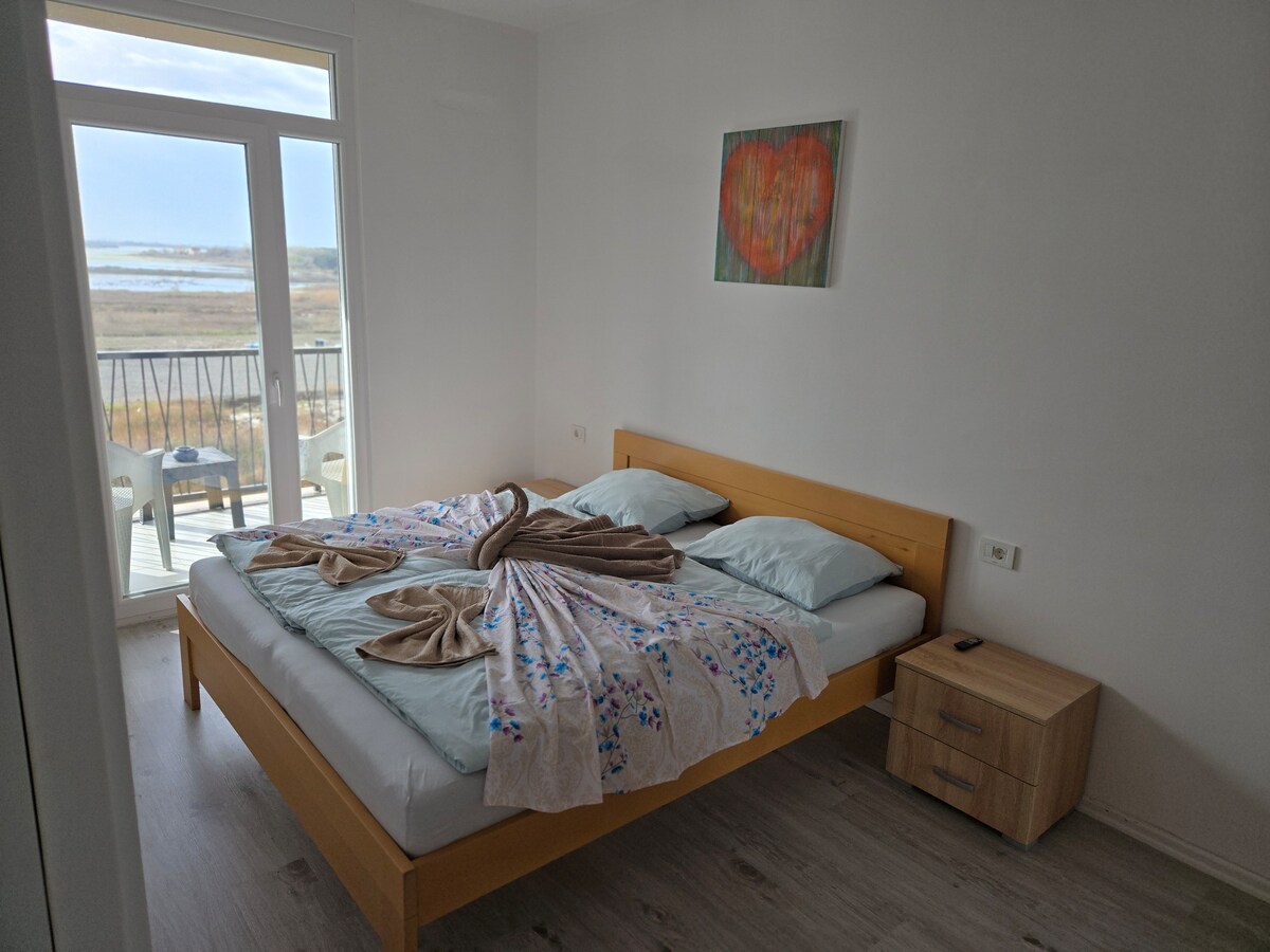 Bell'appartamento in una palazzina di nuova costruzione di fronte al mare. Ideale per una vacanza rilassante a 1 minuto dalla spiaggia. Dotato di un ampio balcone che collega le 2 camere matrimoniali. È presente un parcheggio nelle immediate vicinanze dell'edificio. A pochi passi inizia il lungomare dove troverete il cuore dell'attività turistica della città