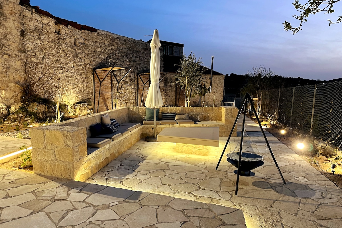 Charming luxury village House – Your Perfect Getaway! Escape to a peaceful village retreat surrounded by nature and full privacy. The house is fully equipped. – A lush garden with a variety of fruit trees – Outdoor sauna and cold jacuzzi – Cozy sunken seating area around a fire pit – A natural stream running through the garden – Open mountain views – Just minutes from the stunning Troodos Mountains Ideal for those seeking quiet, comfort, and connection to nature.