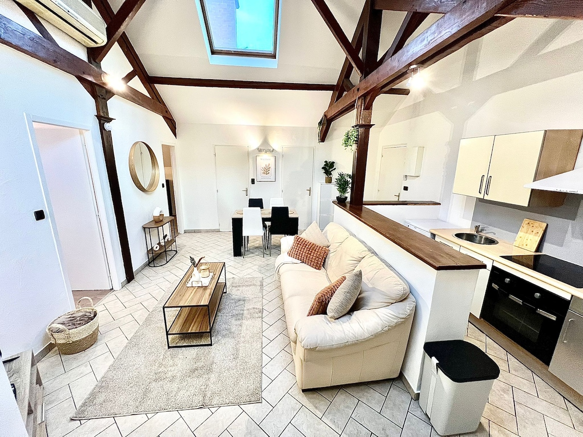 Bienvenue au logement Le MaJestiK! Laissez vous séduire par son charme unique et élégant. Idéalement pensé, vous vous y sentirez tout de suite à l'aise. Son environnement est calme, car Le MaJestiK est situé en fond de cour, au 1er étage, (vous n'aurez qu'un voisin dans le bâtiment!). Coté literie, vous profiterez d'un matelas Emma hybride 2. (confort moelleux). Situé à 900m de la Gare des Bénédictins de Limoges. ( 12 minutes à pied).