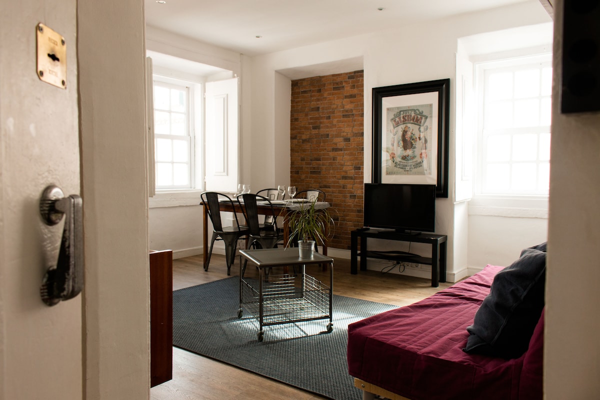A 7 suite building (each bedroom with a private bathroom) in a very central location with a view over Saint George's Castle and the Tagus River (side view). Famous points of interest nearby (300 m) include: Rossio Square, Liberty Avenue, Marques of Pombal Square, Chiado, Baixa, etc. You will also be near the subway, tram 28 and a train station that gets you to Sintra. The entire building is desinfected between each stay. To check-in, it is mandatory that the identification of all is provided.