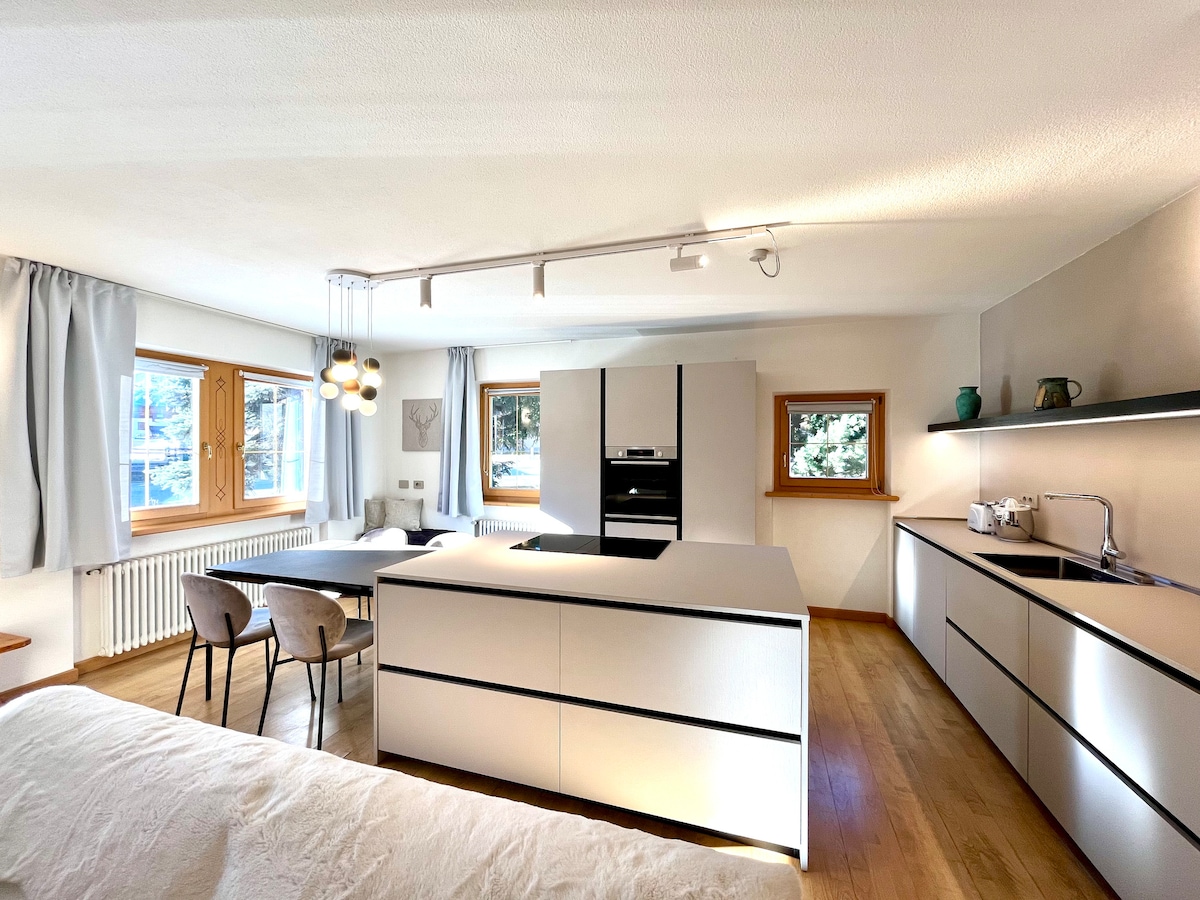 Incantevole appartamento open space per due persone a 100 metri dall'impianto di risalita Carosello 3000. Situato in una zona tranquilla ma vicina a tutti i punti di interesse di Livigno. Parcheggio in struttura. Deposito sci/bici con scalda scarponi.