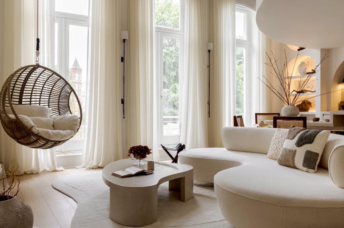 Elegant, light-filled flat overlooking a private garden square in central Earl’s Court. Minutes from the Tube, close to High Street Ken, South Kensington, Chelsea, and Holland Park - the perfect base for exploring London. Stylish interiors with large windows, blackout curtains, smart TV, and workspace. Enjoy access to a beautiful residents' garden with a playground and benches. Sleeps up to 4 guests with a double bedroom and sofa bed. A refined and peaceful retreat in the heart of the city.