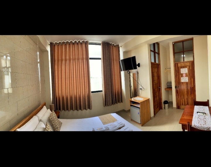 ✔️ Cama Queen cómoda, ideal para descansar tras un día de aventuras por cataratas y lagunas. ✔️ Espacio ventilado, con luz natural, baño privado y agua caliente. ✔️ Decoración cálida con esencia amazónica que inspira calma. ✔️ Ambiente sereno para parejas que valoran la limpieza, el silencio y el buen trato. ✔️ A pasos del centro de Tarapoto, en una zona segura y tranquila. 🌿 Elige una experiencia cercana, natural y auténtica, te hará sentir como en casa. 🌿No incluye Desayuno
