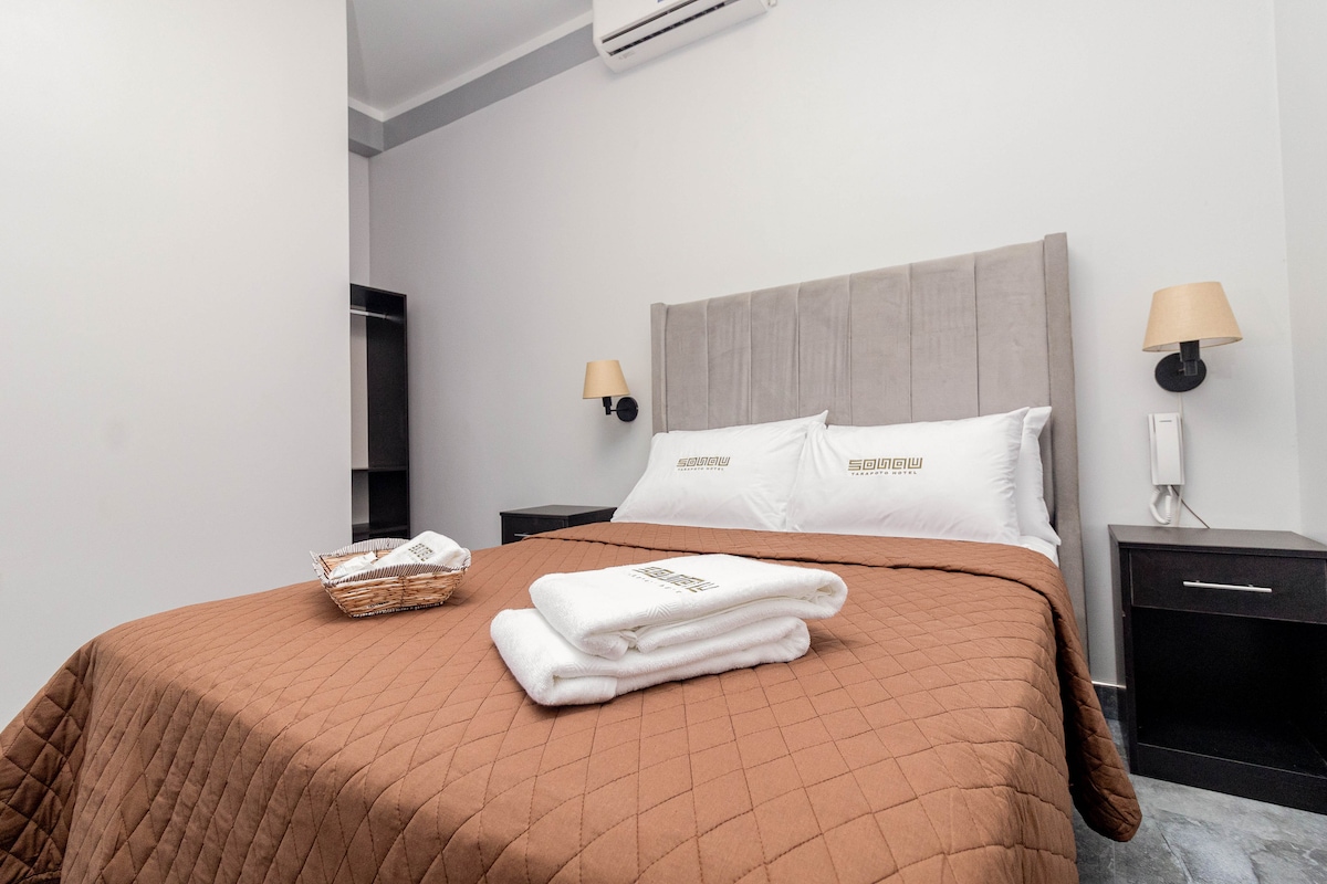 Hotel La Casona cuenta con habitaciones habitaciones dobles amplias y ventiladas, con aire acondicionado, instalaciones seguras y limpias. Usted podrá tener una estadía agradable, con las comodidades que se merece, todo esto en una relacion calidad – precio que ningún otro hotel le podría ofrecer en la ciudad. La ubicación es estratégica estando en pleno centro de la ciudad y teniendo acceso a diversos lugares como markets, boulevar, museos entre otros.