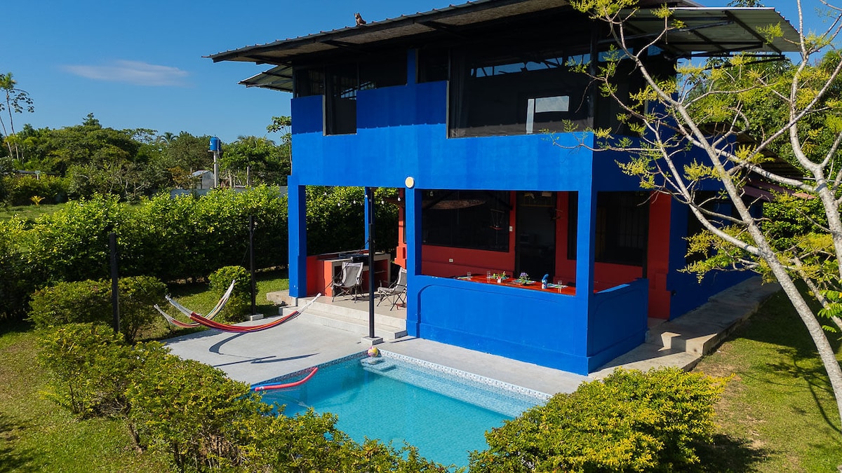Confortable private house surrounded by jungle..spring matrace to rest well..futon with table downstairs.. 220V solar system..WIFI (STARLINK) Short walking distance access to shower and bathroom .. shared chill area indoor .. gym .. Maloca with indoor fire pit .. terrace with 9000L swiming pool (natural bit of leaves and algae) Located out of town in jungle .. access to town walking or mototaxi 10 minuts You can see monkeys spiders and other jungle creatures around here in its natural habitat