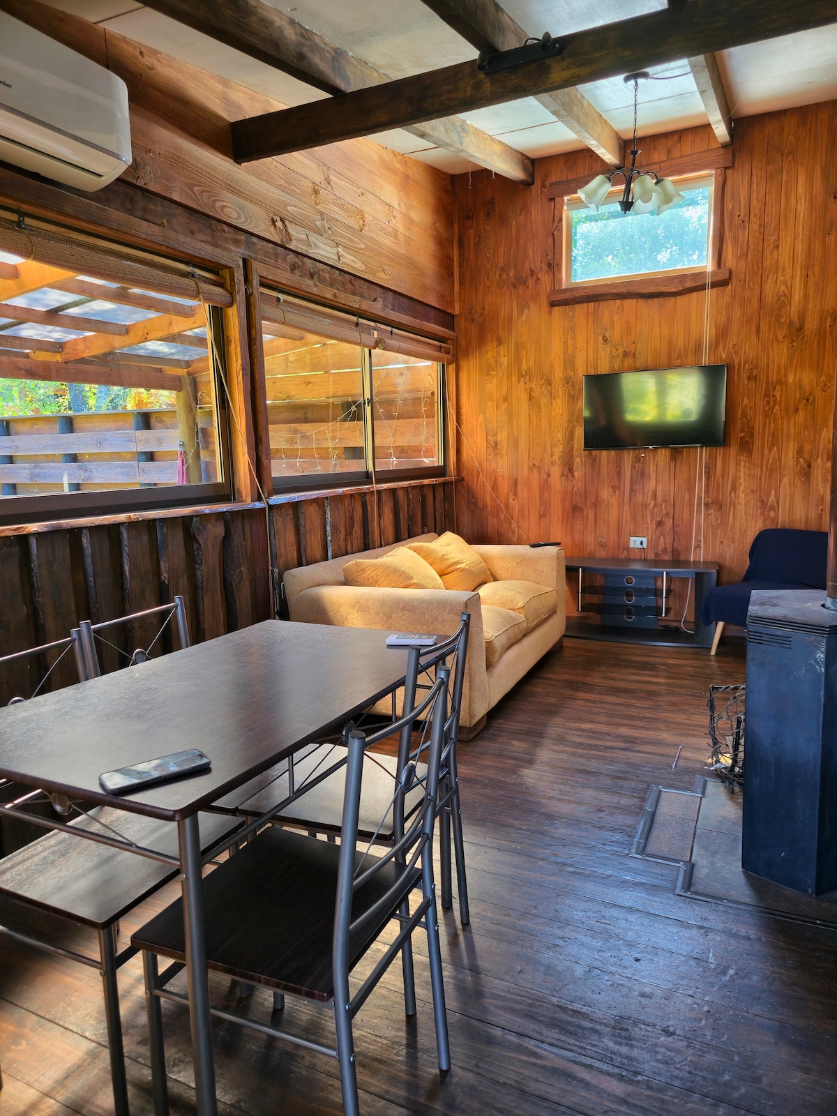 En este lugar podrás ,salir de la rutina y relajarte en lugar privado. Si quieres disfrutar de la tinaja con agua caliente deberás pagar un adicional y avisar con anticipación para revisar disponibilidad y tiempo de preparación .(alrededor de 5 horas se demora en estar preparada) La cabaña está full equipada con capacidad de hasta 5 personas (3 camas más un futon) Recomendamos comunicarse antes de llegar al alojamiento para entregar detalles de la ubicación y leer la Guía de Llegada.