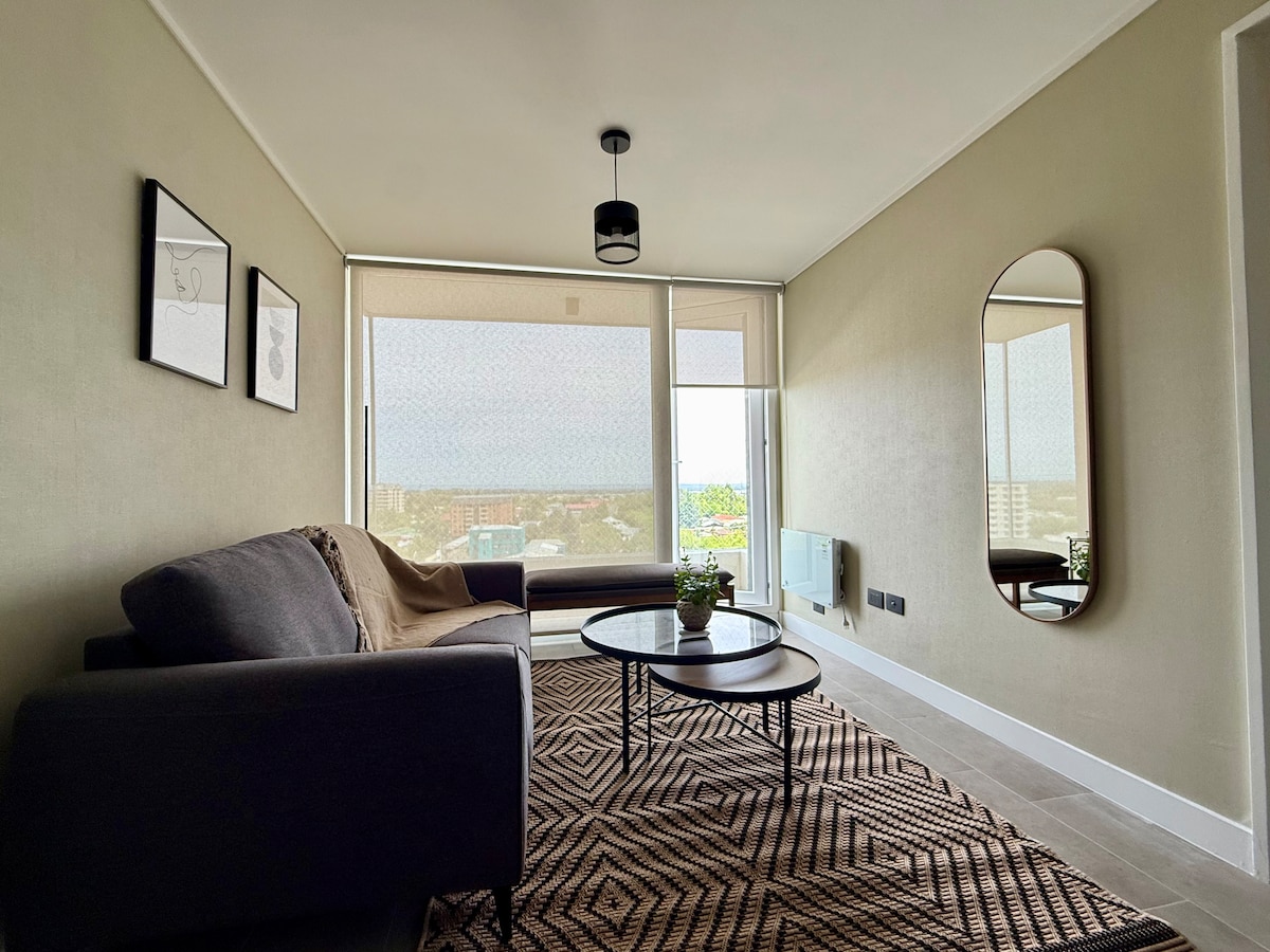 Situado en el exclusivo condominio Distrito Ícono, estarás a pasos del Mall Plaza, supermercados, restaurantes, cafés y gimnasio. Además, conserjería 24/7 garantiza seguridad y tranquilidad. Lo que más disfrutan nuestros huéspedes: La vista al atardecer desde el balcón. La cercanía a todo lo necesario sin perder privacidad. El ambiente sereno que invita a relajarse después de un día de trabajo o turismo. Reserva tu estadía y vive una experiencia única en Mirador del Crepúsculo.