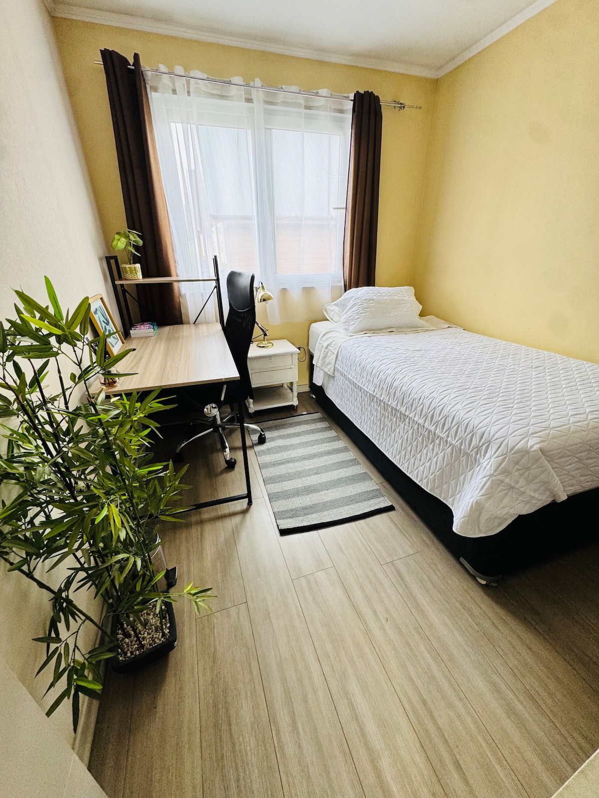 Relájate con toda la familia en este tranquilo lugar para quedarse. A pasos del terminal de buses, ruta 5 sur y a 10 minutos del centro de la ciudad. Departamento muy acogedor, full equipado, lavadora secadora, aire acondicionado , Tv en living y dormitorio principal con baño en suite, wifi, Tv por cable, estacionamiento y conserjería 24/7, piscina.