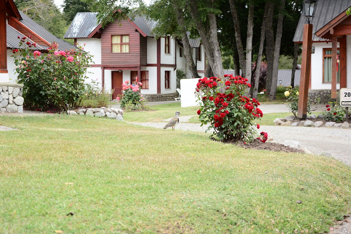 Relajate con toda la familia en este tranquilo alojamiento. Contamos con 13 cabañas totalmente equipadas para que puedas sentirte como en casa. Podes disfrutar también de parrilla, estacionamiento, juegos infantiles, aro de basquet, arco de futbol, metegol, quincho, pileta climatizada, sauna, reposeras y mucho mas para hacer tu estadía inolvidable. Estamos sobre la ruta 40, a 1.5kms del centro de Villa la Angostura.