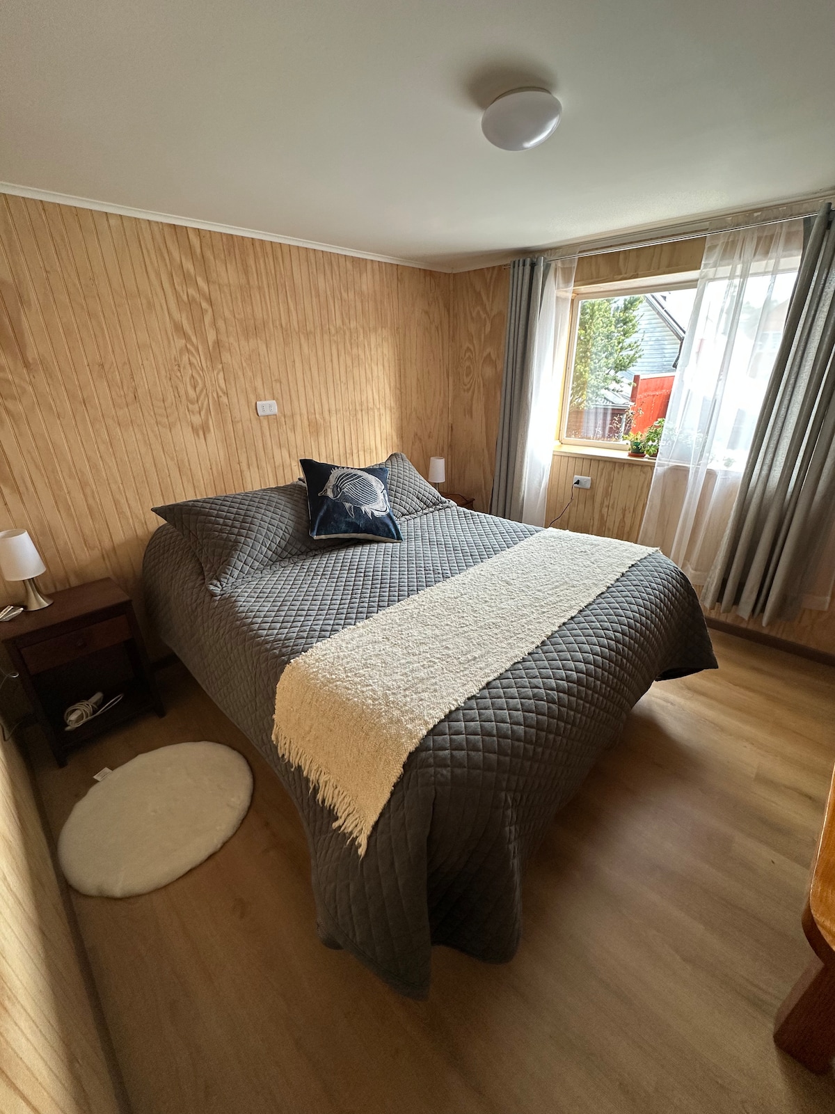 Departamento pareado con decoración sencilla, básicamente construído con madera lo que le dá un ambiente mas rústico y cálido, cuenta con refrigerador, microonda, cocina a gas, hervidor, loza, cafetera, ollas y cubiertos. Baño privado, toallas, shampoo, jabón, papel higiénico, secador de pelo, escritorio y silla para quienes trabajen online, cerca de paraderos de buses, servicentro, farmacia, clínica, panaderías, a 5/6 cuadras del centro de Puerto Varas, Entrada totalmente independiente