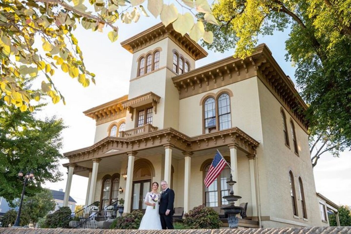 The Culbertson Suite features a stately four poster king sized bed to complement the soaring 15 foot ceilings and 11′ foot double-hung windows. An attached full bath with an ornate cast-iron tub, travertine tile and a balcony overlooking the Ohio River and the Landmark Culbertson Mansion Museum make this room an unforgettable part of your stay. A makeup table with mirror, a floor standing mirror and HD Cable TV are also in the suite.