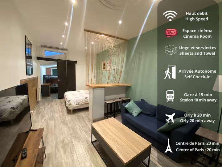 平均评分 5 分(满分 5 分),共 14 条评价巴黎附近的舒适单间公寓