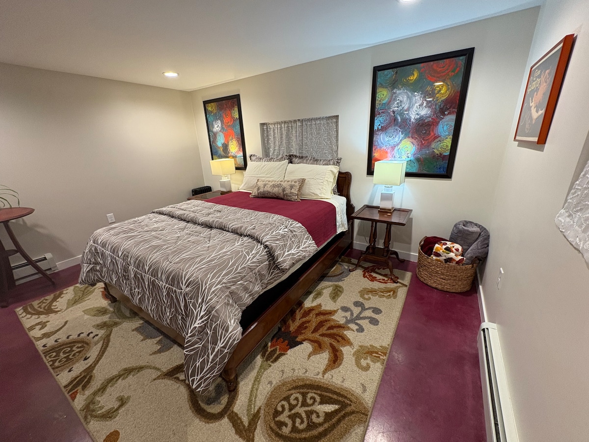 Welcome to Loveland, a community nestled in the foothills and a gateway to Rocky Mountain National Park. Our downstairs suite is 600 sq. ft. in our private home. There is a bedroom with a queen bed and a large, private full bath. The Living Room features a fireplace, sofa, sitting chairs,TV, table, and an additional queen size bed. The suite includes a mini kitchen for cooking simple meals and snacks. We live on the main level and will be available if needed.