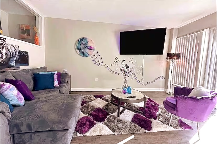 The Gallery is a 2 bedroom 1.5 bathroom suite with amazing city views. Located on Illinois and Market Street, you will have a birds eye view of Monument Circle and The Arts Garden. Enjoy a clean, spacious, and private stay while being close to all Indianapolis has to offer. Lucas Oil, the Indianapolis Convention Center, Gainbridge Fieldhouse, and popular restaurants are all in walking distance All art work on display are sourced from local artists.