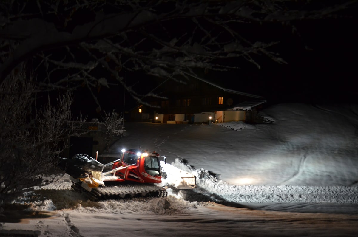 Bright, cozy one-room studio on the ground floor of a two-family house with a separate entrance in a very quiet and sunny location. The studio offers a unique panoramic view of the fascinating Bernese Alps. The studio features two single beds (which can be pushed together to form a double bed). Swisscom TV and radio, Wi-Fi, a kitchenette with an oven, a ceramic hob, and a shower/WC. Private parking is available. Our hot water and electricity are powered by a solar system. Erika und René
