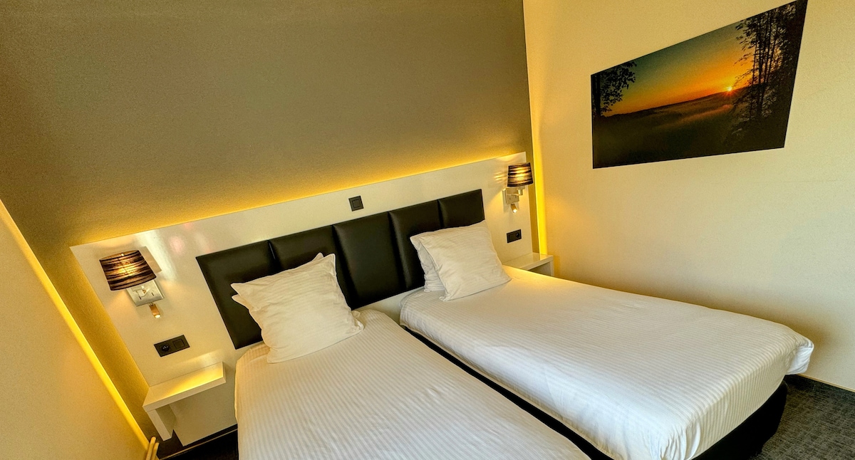 Envie de nature et de confort ? Notre hôtel familial à Libramont vous accueille pour une pause détente en Ardenne. Ambiance conviviale, petit-déj’ gourmand inclus, espace bien-être (en supplément et sur réservation) : jacuzzi, cabine infra-rouge et vélo elliptique, bar lounge sympa… Idéal pour rando, VTT, moto ou escapade pro. À deux pas de Saint-Hubert, Bouillon, Redu, La Roche, Bastogne… Et côté restos, brasseries locales ou bonnes adresses gourmandes à découvrir tout autour.