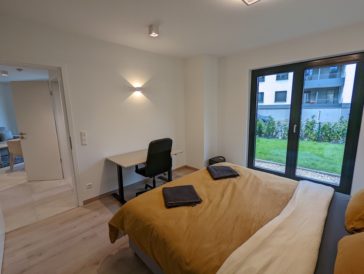 Welcome to this modern 3-bedroom, 2-bath apartment in charming Walferdange, just 10 minutes from Luxembourg City and Kirchberg, and 10 minutes from the airport. Enjoy a bright, peaceful space with two queen beds, one twin, a full kitchen, air conditioning, heating, a terrace, and free parking. Perfect for business, family, or leisure stays.