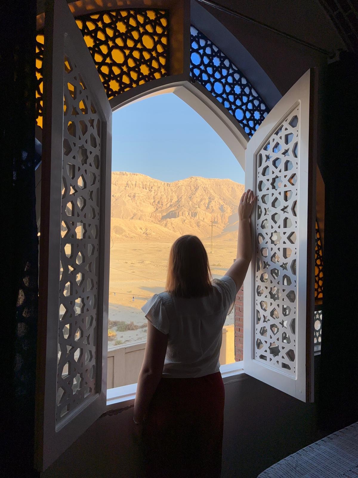 Habu Terrace is a new 5-room guesthouse located steps from the magnificent Medinet Habu temple, at the base of the western Theban mountain. Each room has been carefully designed with your comfort in mind and curated with unique antiques and art. Take your morning coffee with the birds in our lush garden and then watch the sun set over the mountain from your private veranda or our spectacular roof deck. Habu Terrace is centrally located and convenient to access all archaeological sites.