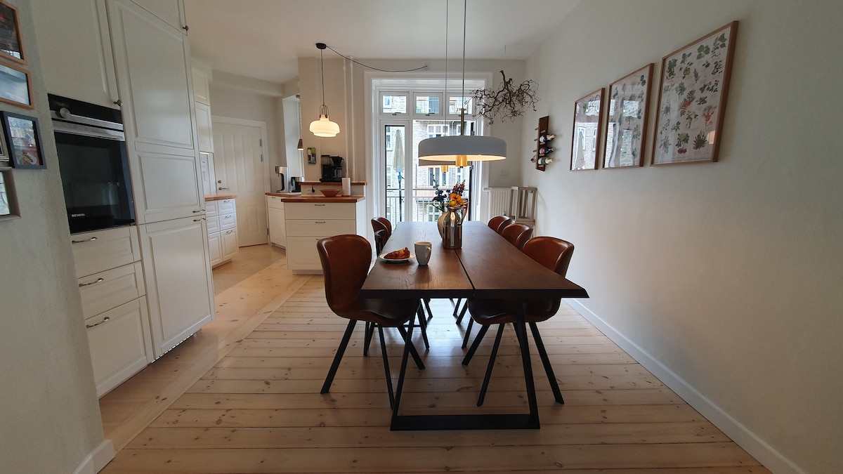 Unique and magnificent private apartment in an unbeatable location at the heart of Inner Copenhagens middle age area. Your own “town house” with a private entrance from a quit sidestreet. A high-end luxury spread over 140 sqm, you stay in a fusion Art Gallery luxury apartment Design furniture, hand built kitchen, wooden floors. high ceilings, contemp. art. Historic estate built in 1789 once a theater This place is also perfect for business meetings / work stays of longer or shorter periods
