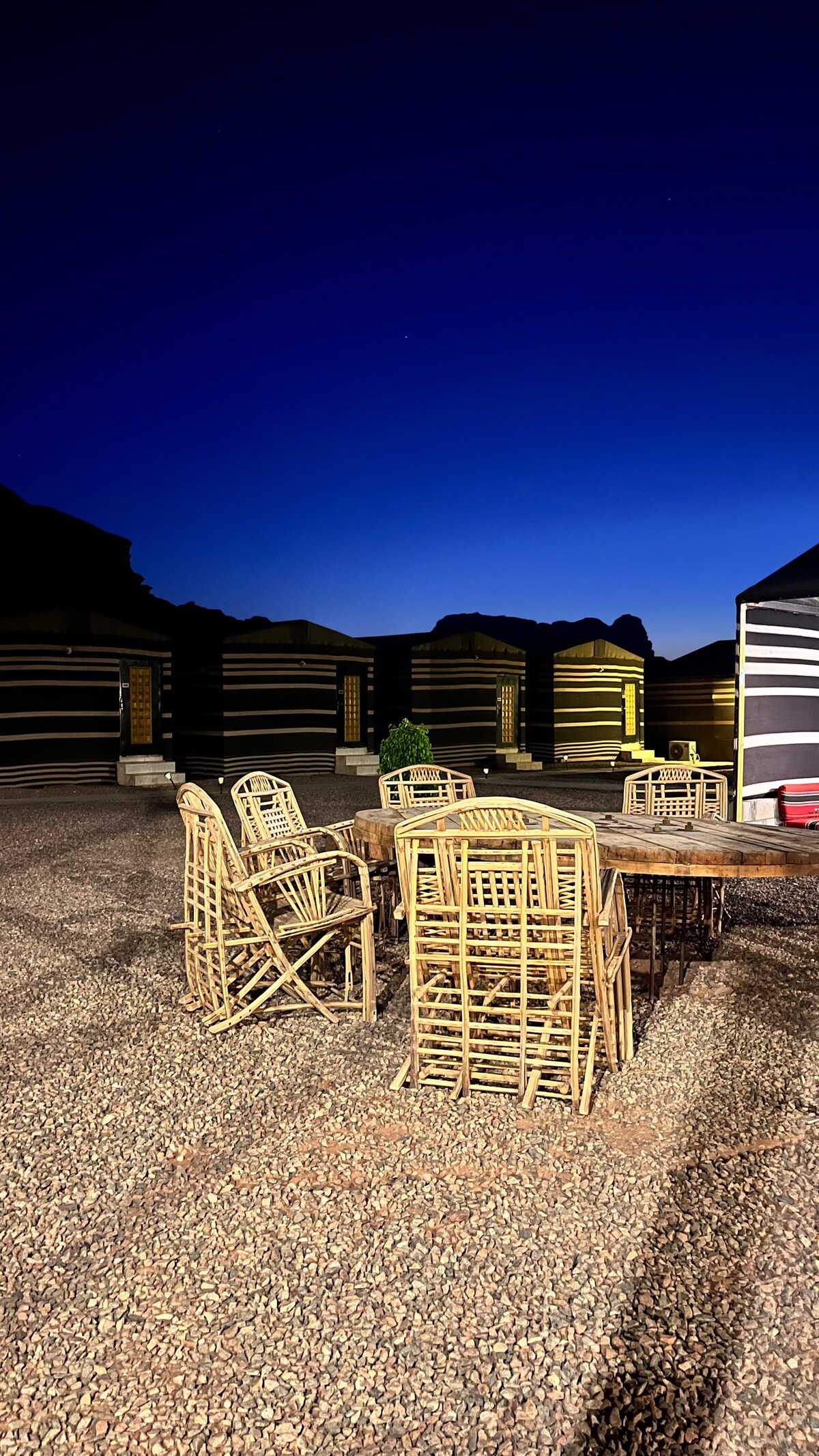 Spend a night in a luxury Bedouin Tent in the heart of Wadi Rum Desert This luxury Tent consists of 3 single sized bed in a private room with bathroom and a panoramic window that lead to the private terrace with a amazing view on the desert. You will be provided with towels, shampoo and free water. It includes free traditional Bedouin dinner and breakfast in the commom room. The transfer from the village is 10JD/person if you don't book a tour with us.
