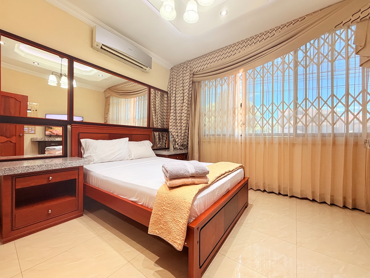 Relájate en este espacio tranquilo y elegante. Cuenta con 3 habitaciones con aire acondicionado, 2 baños con ducha y 1 sencillo, sala y cocina de lujo. Pero sobre todo, es un lugar seguro.