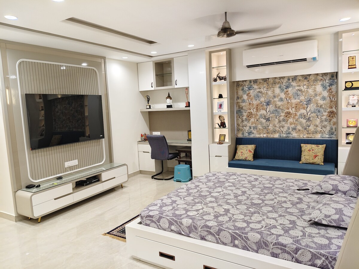 Situated at the posh and coveted residential area Vijaynagar of Indore, this 3 BHK Ground floor portion has all the amenities and facilities a modern traveller expects for. Bedrooms with Smart TV, AC, Memory foam mattresses, wardrobe, attached bath with water heater and all. Fully equipped modular kitchen with fridge, electric chimney, gas and induction cooktop, water purifier, utensils for cooking etc. Dining Hall and Lounge/Drawing room. All in all a Home away from Home for a group of six.