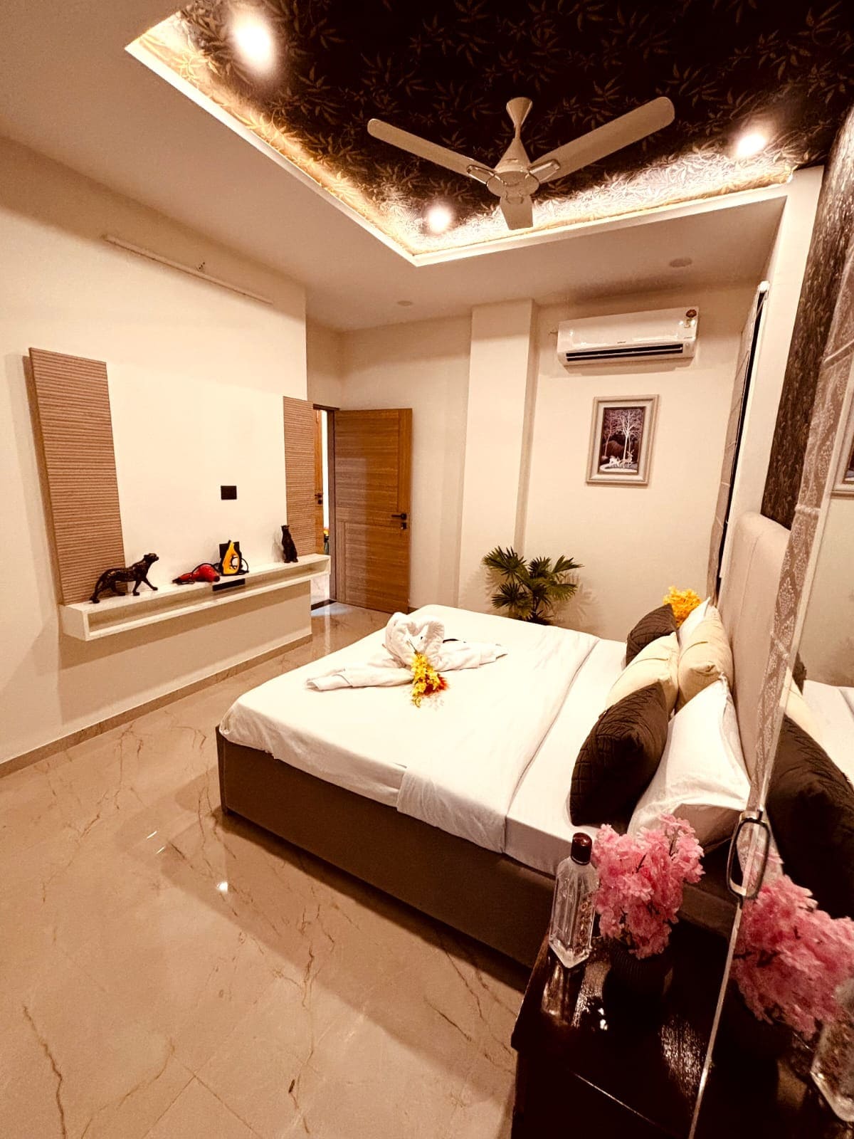Luxury 2BHK Homestay in Ujjain 🌟 Prime Location: Minutes from Mahakaleshwar Temple, Harsiddhi Temple, and Shipra River. 🛋️ Elegant Interiors: Traditional charm meets modern luxury in spacious living areas. 🛏️ Two Luxurious Bedrooms: King-size beds with air conditioning, Wi-Fi, and premium linens. 🍳 Fully Equipped Kitchen: Prepare your meals in style. 🌿 Relaxing Garden: Perfect for tea, meditation, and unwinding. 📍 Personalised Experience: Local tips and recommendations available. 🅿️Car