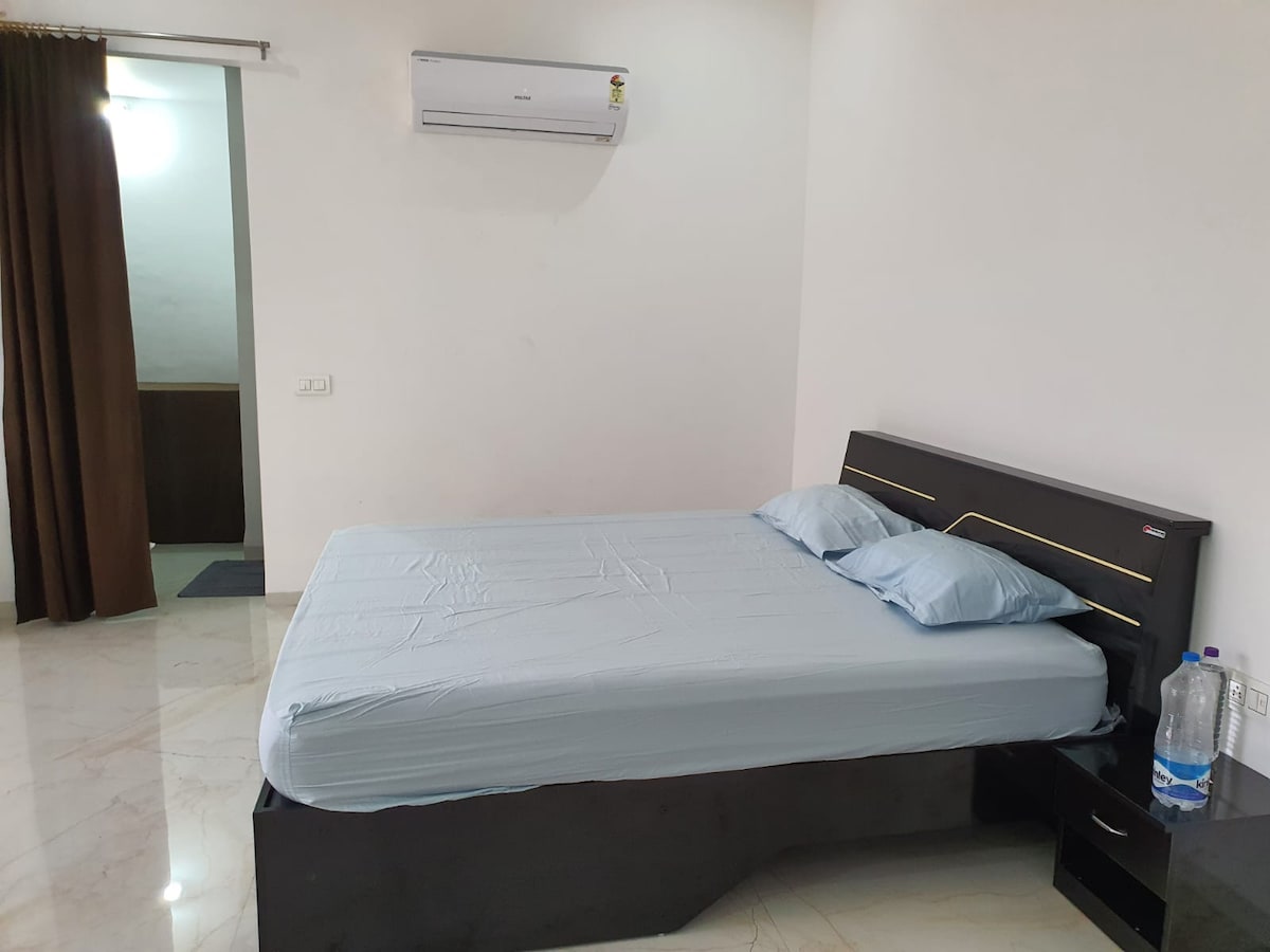 - equiped kitchen - Fully furnished home - Extreamely safe and friendly neighbourhood - Private front covered poarch - breakfast included but if more than 4 then not included - Induction available for easy cooking - Open terrace for barbaeque and bonfire - Easy access to cabs and taxis - Free parking provided - Food is also available at an additional cost. - Secured building - 2 ACbedrooms with double bed and attached letbaths and 1 hall and 1 kitchen - Home made breakfast with authentic taste