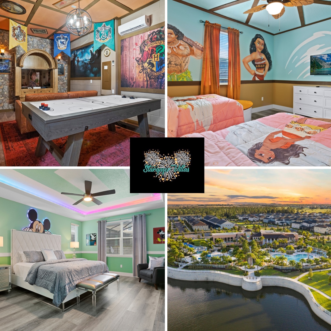 Expansive7BR Stargazer Villas Orlando area vacation home is close to Disney World & includes complimentary heated pool & spa. Within the gated community of Solara Resort, enjoy fantastic amenities like the wave simulator, water park, fitness center, sports courts, and dining. Perfect for memorable family adventures our renovated modern design villa ensures each day is filled with joy, comfort, and unforgettable memories in the heart of Florida's magic, creating the ultimate vacation experience.