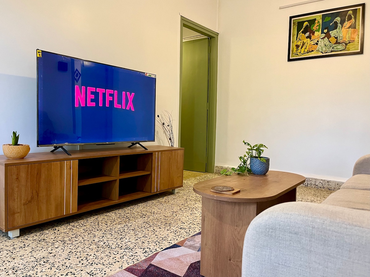 WiFi Enabled Bedroom-Hall-Kitchen all Furnished with AC in all rooms & a Breathking View, we guarantee peaceful holiday at our heavenly Adobe. Serendipity, Solace, Surprise is what our home would leave you with Love and lot of care with which we have designed our place will leave you spellbound Apartment is designed for a comfortable stay & comes with 2 televisions a 55 inch in the living & a 43 inch at Bedroom. Moreover we have a Private Jacuzzi in the shower area.