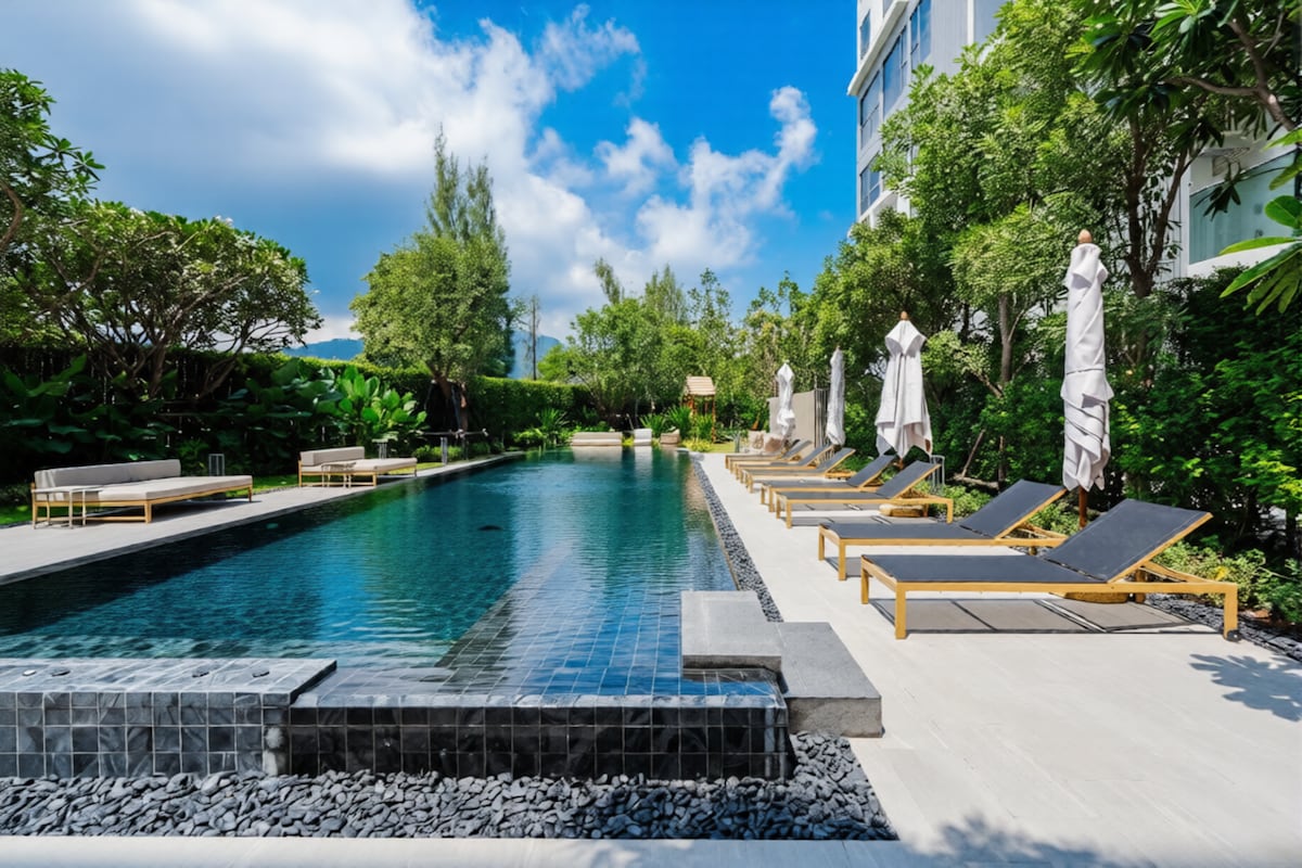Welcome to our 5th floor apartment with a balcony facing the pool, garden and sideways the sea. Our peaceful, two bedroom & two bathroom apartment can accommodate up to 5 persons (5th person being a child sleeping on a sofa bed / crib) for either leisure, long stay or remote work. The apartment is a part of luxurious Baan Mai Khao condominium resort by Sansiri with 7 swimming pools, lounges, gym and location directly by the beach. The price includes electricity, tap water & wifi.