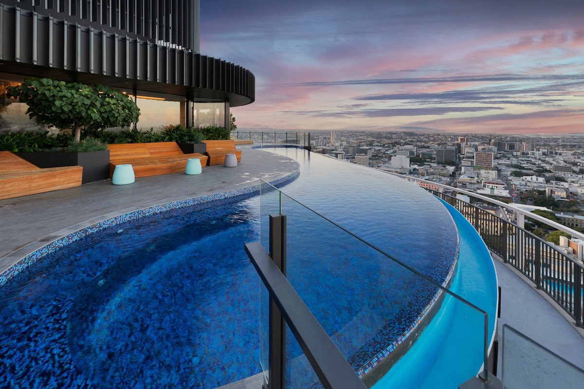 Murarrie现代2卧室,带泳池和城市景观