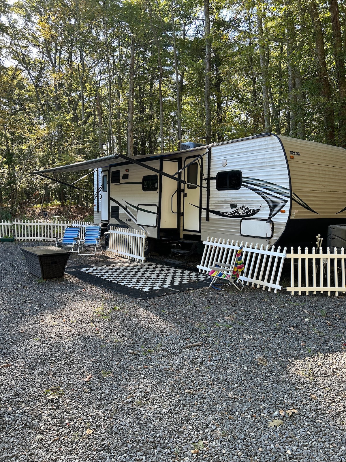 Enjoy the beautiful town of Wells in a completely renovated 25-ft camper on a private lot just 1.5 miles from Ogunquit Beach and walking distance from a trolley stop. Set on a secluded, fenced lot, relax outside on the deck, fire pit (FREE firewood), and plenty of lawn to run. It has a queen size bed, a reclining sleeper chair, and a fold down dinette for more guests or kids! It has AC and heat for comfort. This adorable RV has been thoughtfully modernized with all the comforts of home in mind!