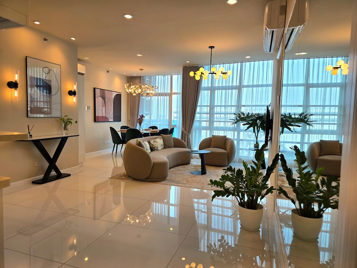 Enjoy our luxury home concept that connects all the guests in an incredible way. The functionality of the kitchen, dining, bedrooms among others is extremely gracious and fully air conditioned. The cinematic hotel experience with videoke in a staycation right in the heart of Makati. Chill and relax in a fully furnished master suite with Lazy boy and en suit jacuzzi! SUPER CONVENIENT! Bowling, billiards, massages, an authentic Korean sauna, resto bar and lively karaoke—all within a 3-min walk!
