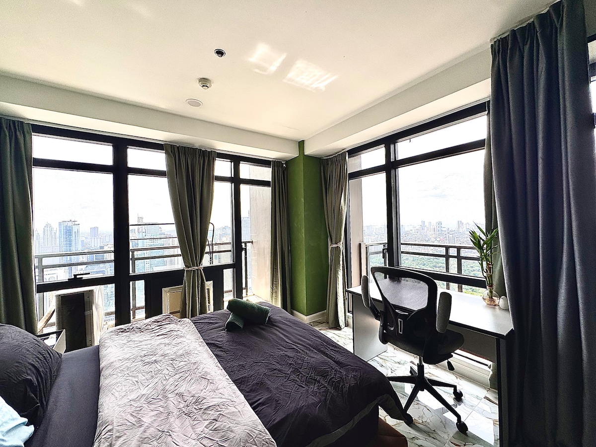 With 500MBPS WIFI in NEWLY Industrial stylish and classy AFFORDABLE AIRBNB condo at AIR RESIDENCES MAKATI the heart of Makati's business district. Enjoy city views from floor-to-ceiling windows, Netflix on a 60" TV, theres Nespresso machine with free coffee pods for you.The apartment features appliances, a hair dryer, electronic stove, iron, refrigerator, washing machine, toaster, microwave and shower with heater, a work/study area,highlight is the breathtaking view of high-rise buildings.