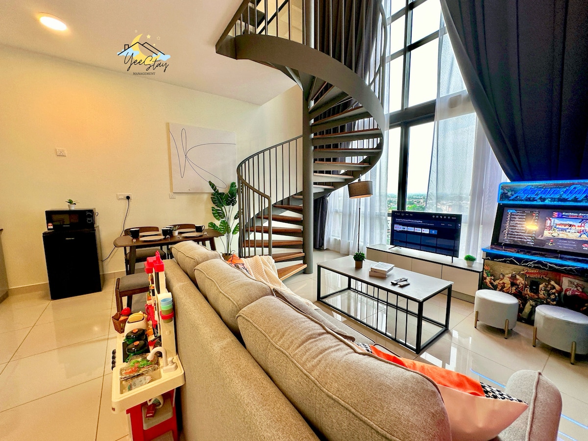 How many pax can stay here: Apartment can accommodate 4 pax and still comfortable for 6 pax. It's located in the heart of Melaka City and just 3 km away from historical building A'Famosa and Studthuy's Building. Facilities: Provide FREE parking lot for 1 car at level 2. Others can park at the ground floor. List of amenities that provided within the house: This stylish apartment also come with 2 queen-size beds & 1 queen-size foldable sofa bed, 1 extra toto, 60" LED android TV, WI-FI, etc.