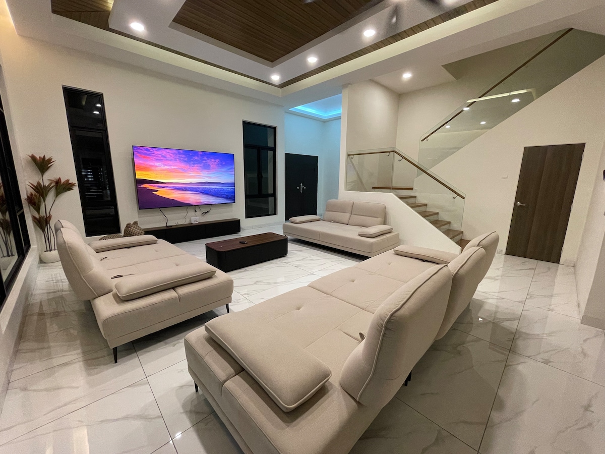 🏠 5 air-conditioned rooms with private bathrooms 🛋️ Single-storey villa + loft entertainment area (KTV, board games & more) 👨👩👧 Cozy stay for family with elderly & friends gatherings 🏊 Large Indoor swimming pool + BBQ facilities provided 🥦1 mins to Supermarket 🥥 5 mins to Klebang Coconut Milkshake 🎢 7 mins to MoCity Fun Park & Klebang Beach 🌆 8 mins to Kota Laksamana 🛍️ 15 mins to Jonker Street & Malacca Town