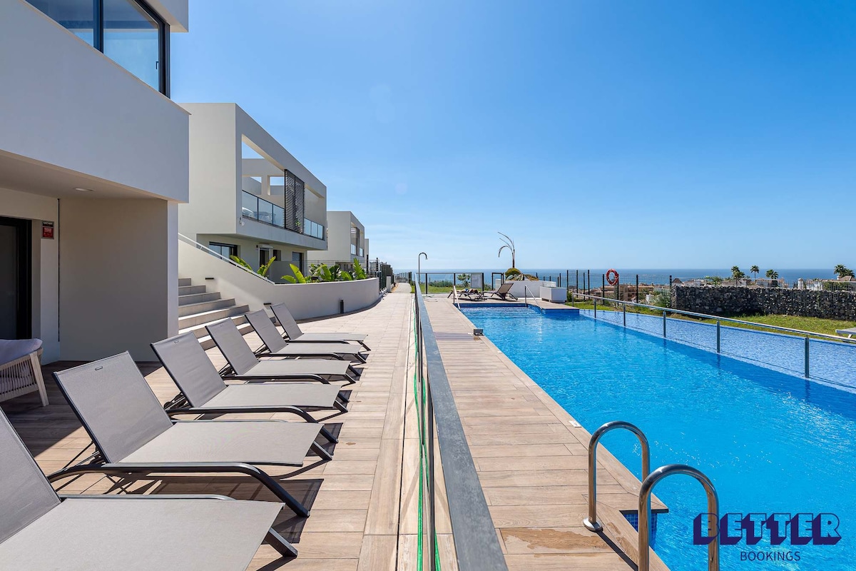 This new townhouse with panoramic seaviews, is the perfect coastal getaway. Enjoy the sunrise & sunset on the rooftop terrace with stunning views of the sea & mountains. A few minutes walk to the beach, shops, bars & restaurants & supermarket - offers convenience & relaxation. Enjoy stunning views from 3 private terraces, a pool, gym, spa, and social area - ideal for unwinding or entertaining. Whether you’re here to relax, explore or stay active, we have everything you need for a memorable stay!