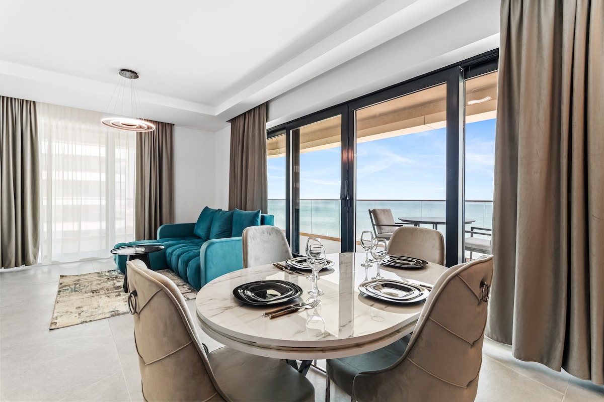 Wake up to the sea breeze, just 50 m from the beach! Bright, spacious living with a cozy work spot and fast, stable internet (300 Mbps). For longer stays, enjoy optional cleaning & linen/towel change – 200 lei/session to keep everything fresh. Fully equipped kitchen, comfy bedroom, and balcony with inspiring sea views — your perfect home by the sea.