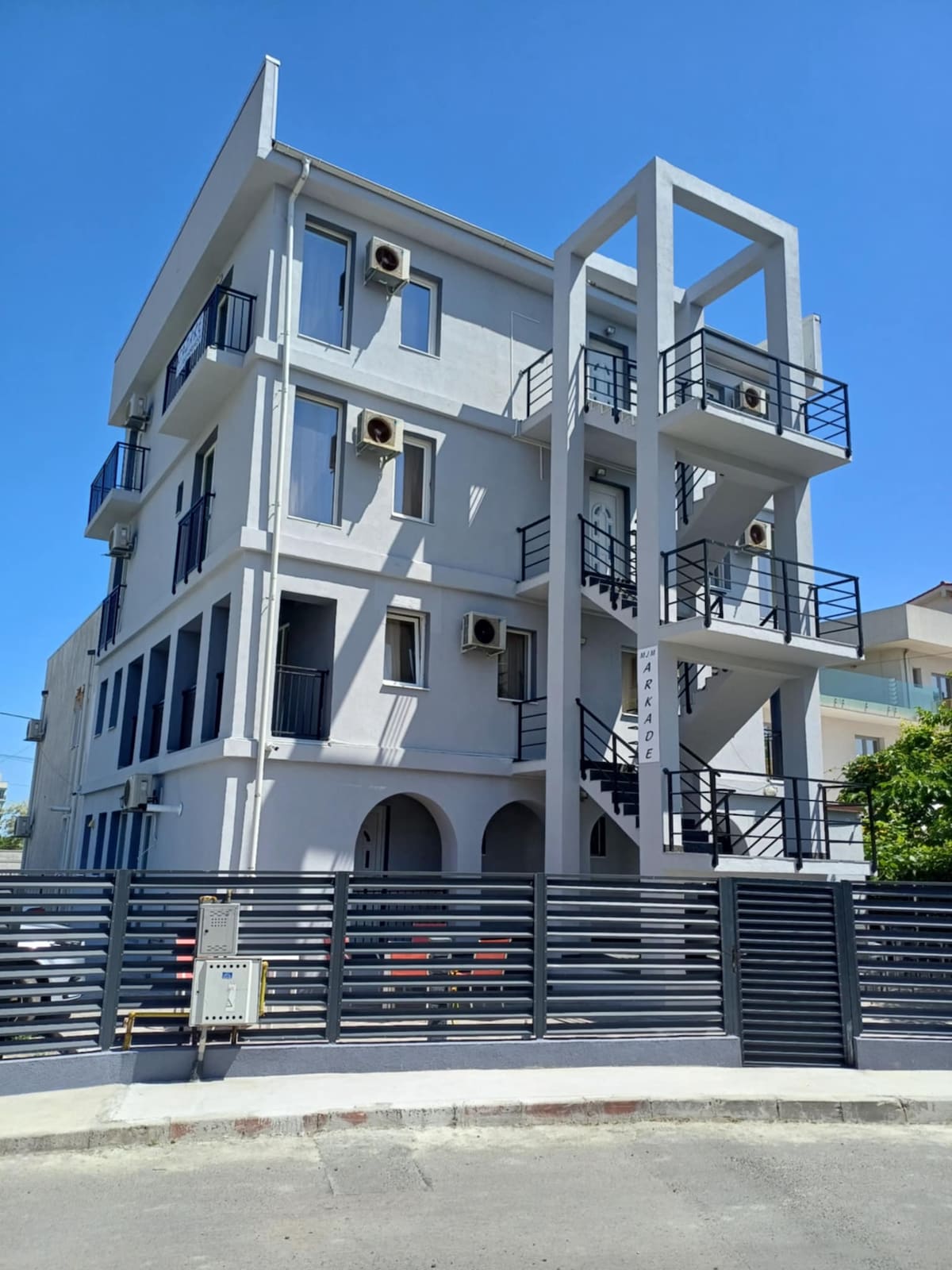 Vila ArKade este situată în zona centrală, la 200 m de plajă, în zona restaurantelor si a supermarketului Lidl. Dispune de 10 spații de cazare, 4 camere duble, 4 camere triple și 2 apartamente( 3 camere). Nu avem posibilitatea de a primi animale de companie!