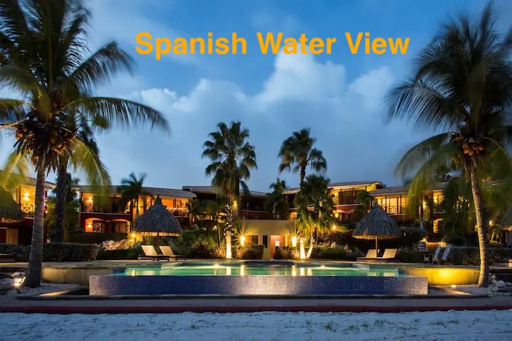 This modern beachfront apartment is located in Brakaput Abou, a 5 minute drive from famous beaches 'Jan Thiel beach' and 'Caracasbaai beach'. The resort name is Spanish Water resort, ( used to be called 'La maya Resort') This apartment features: - Car rental / pickup drop off - Private beach on 'Spanish water'. - 2x infinity edge swimming pools - Waterfront area with Palapas & stunning views - Beautiful tropical gardens - Outdoor relax areas. - Secure parking inside the resort.