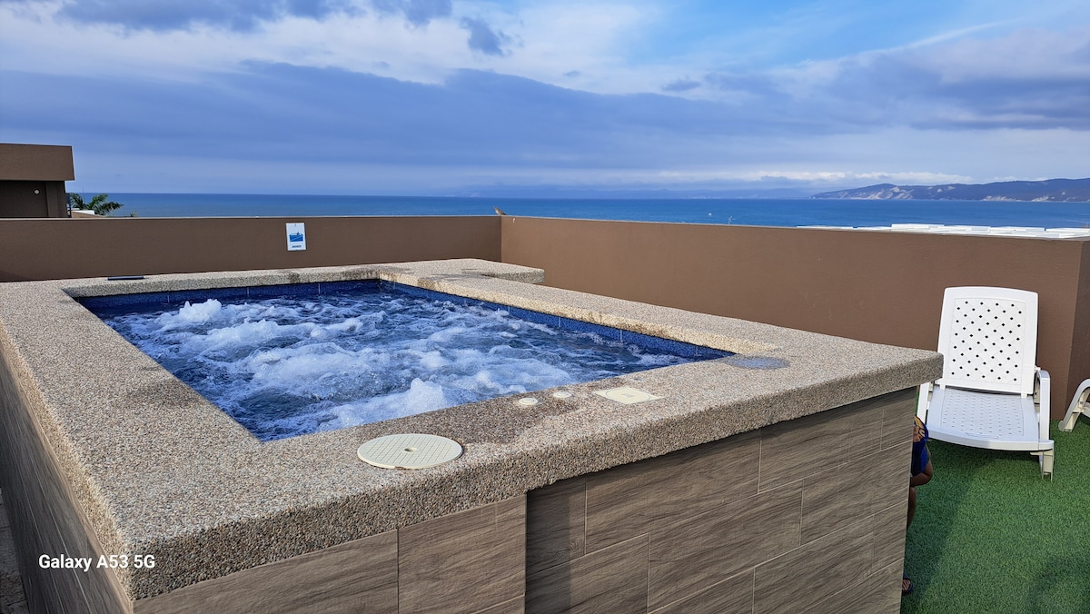¡Un hallazgo excepcional frente al mar! Hospédate en la mejor zona de Manta, con acceso directo a la playa Murciélago y al Mall del Pacífico. Vive una experiencia única con decoración playera y toques oceánicos, ideal para desconectarte y relajarte. Disfruta de piscina, jacuzzi, sauna y seguridad 24/7. Todo lo que necesitas para una estadía inolvidable está aquí. ¡Te encantará tanto que no querrás irte!