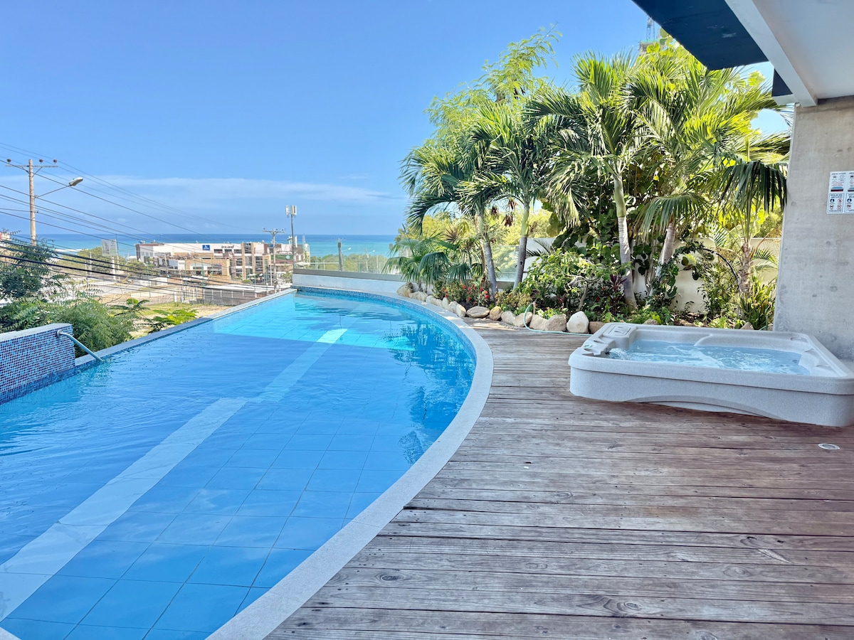 Modern apartment with ocean views, steps from El Murciélago Beach (venue for Ironman 70.3), Mall del Pacífico, and top local restaurants. Perfect for vacation/remote work with a monitor provided. Quiet, away from street noise. 24/7 security and high-speed fiber optic internet. Amenities include a pool, sauna, and jacuzzi (open Tue-Sun, it may change without notice). The building has a generator for common areas, and a UPS keeps the WiFi running. Elevator, water, and internet work during outages.